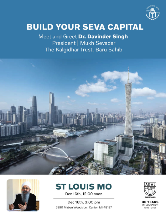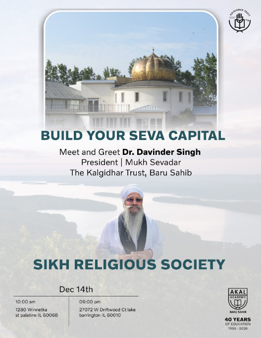Dr. Davinder Singh Ji will remain in the United States until January 2nd, warmly inviting alumni and Sangat to join this collective journey of rebuilding Punjab and fostering global peace through education and seva.